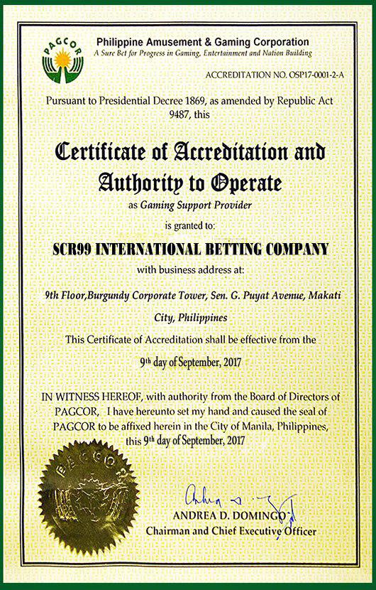 拥有菲律宾政府PAGCOR(Philippine Amusement and Gaming Corporation)颁发的合法网上博彩执照。
